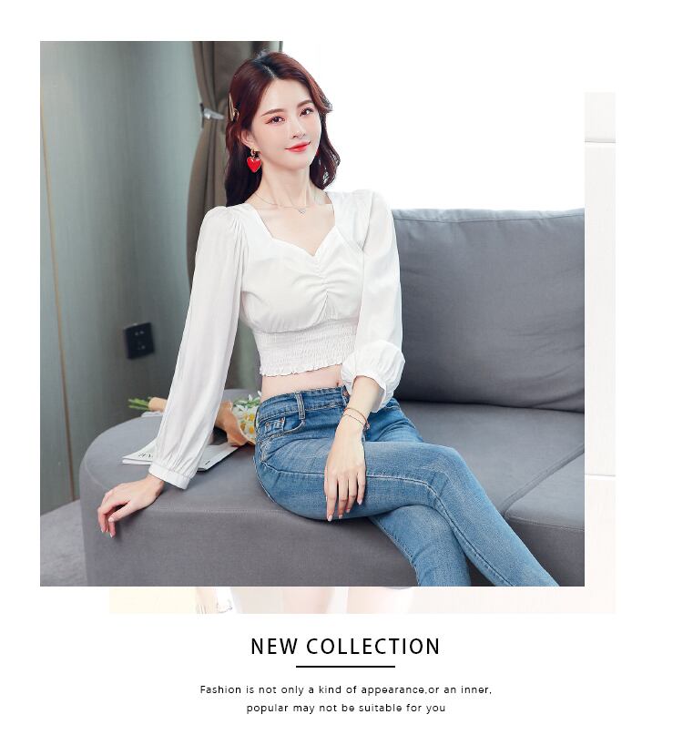 2020年秋新作レディース長袖スクエアネックトップスレディースデザインニッチパフスリーブショートシフォンシャツレディース ロング オータム 秋物 スクウェア yingd31570233464