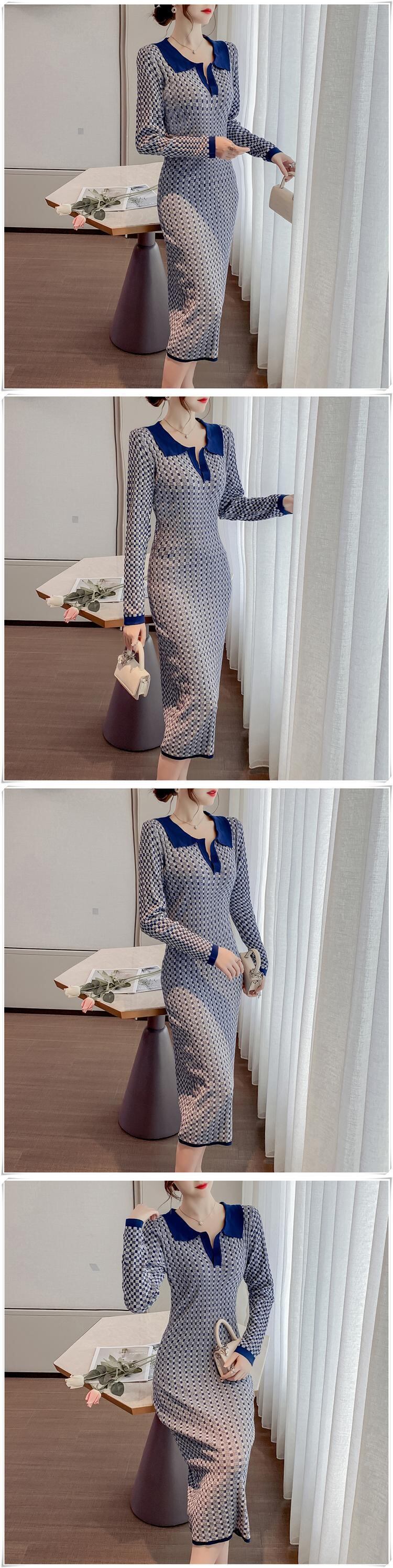 フランスのレトロなロングドレスは、膝上に薄くて高品質ですロングセータードレス長袖ニットドレス女性の秋と冬 オータム 秋物 ウィンター 冬物 yingd42523403799