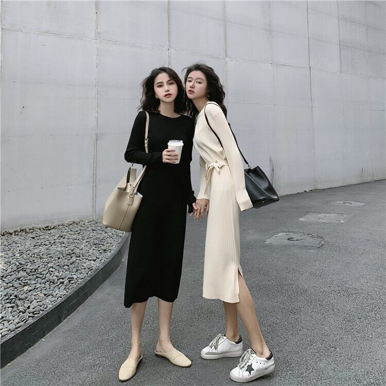 2020年秋新作レディースミドル丈オーバーザニーセータードレスデザインスカートライトおなじみスタイル長袖ニットワンピース ロング オータム 秋物 yingd85535310483