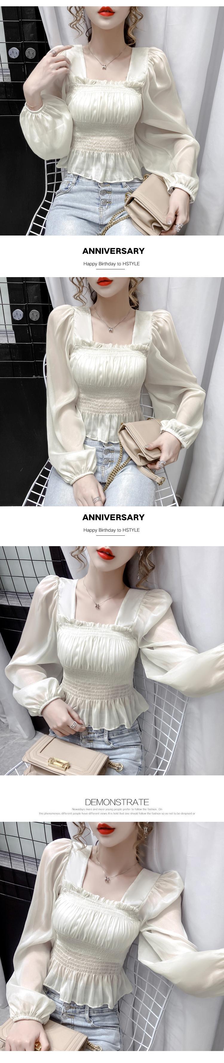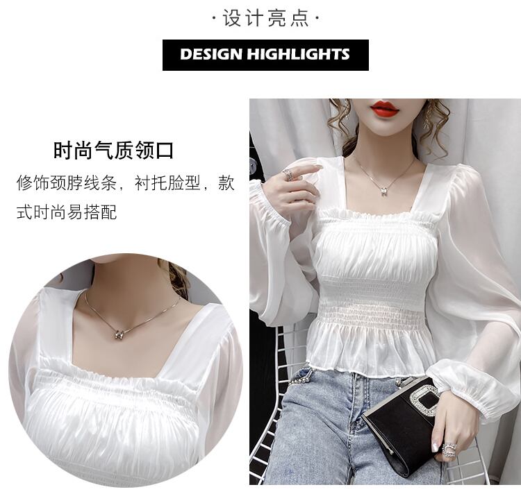 2020年秋ニューファッションとウエスタンスタイルのデザインセンスニッチレトロ香港フレーバースクエアカラーパフスリーブシフォンシャツトップ オータム 秋物 スクウェア yingd49310346443