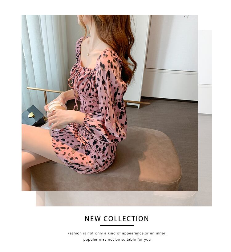 2020年秋新作レディースウエストと細身気質丁寧なマシンスクエアカラーフレンチニッチベルフラワー長袖ワンピース ロング オータム 秋物 フラワーデザイン スクウェア yingd14341348202