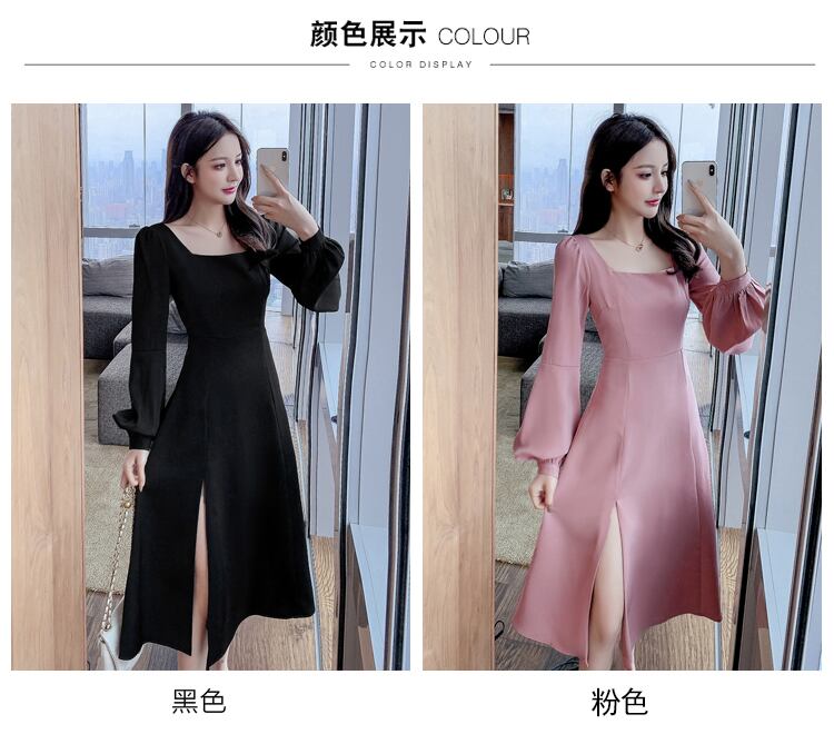 春の服2021新しい女性のフランスのレトロなウエストと薄い気質の女神ファンパフスリーブスクエアカラードレス女性 スプリング 春物 スクウェア yingd73610527112