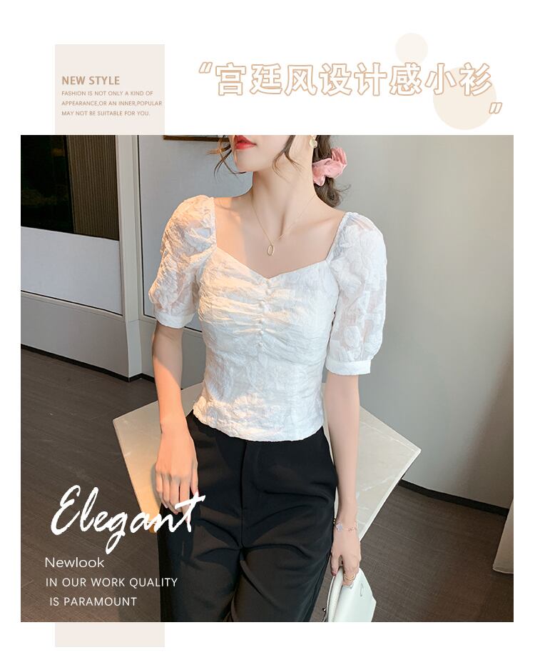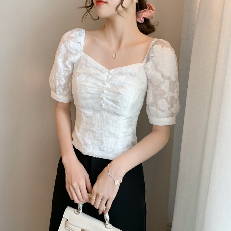 2020年夏の新作フレンチレトロスクエアネック半袖シフォンシャツレディースデザインセンスニッチレースシャツトップトレンド サマー 夏物 スクウェア yingd61435796100