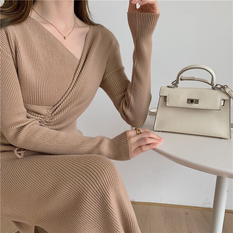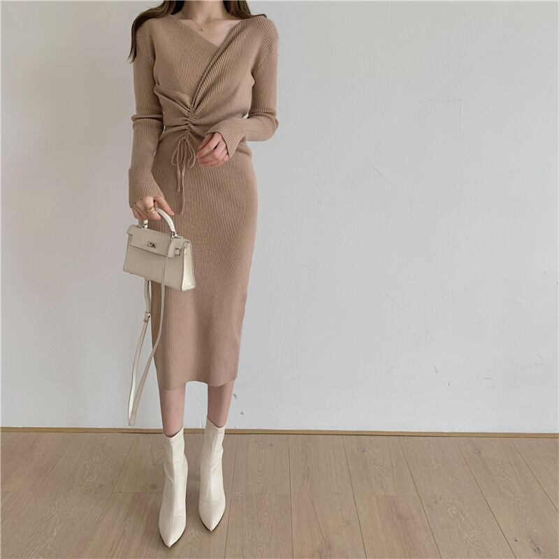 コート、ロングスカート、ロングセータースカート、膝上デザイン、巾着、スリムフィット、インナーニットワンピース、レディース秋冬 オータム 秋物 ウィンター 冬物 yingd13795864806
