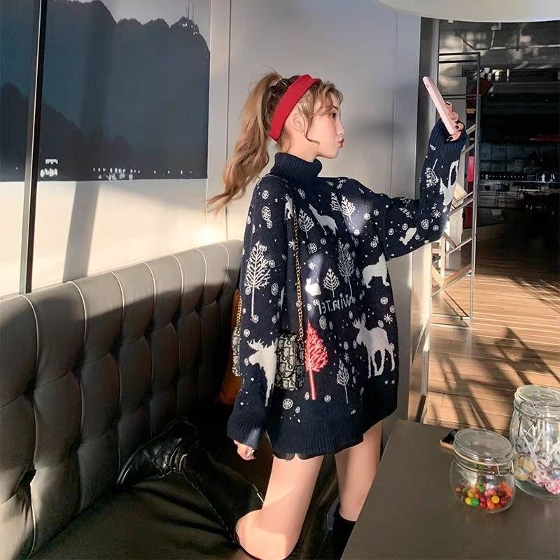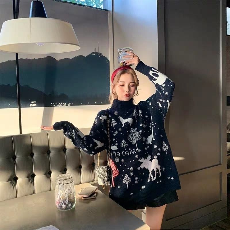 ネットレッドタートルネックレッドクリスマスセーターウィメンズウィンターシックネスルーズレイジーウィンドレトロ香港フレーバー長袖プルオーバーボトミングシャツ ロング 冬物 yingd65341377197