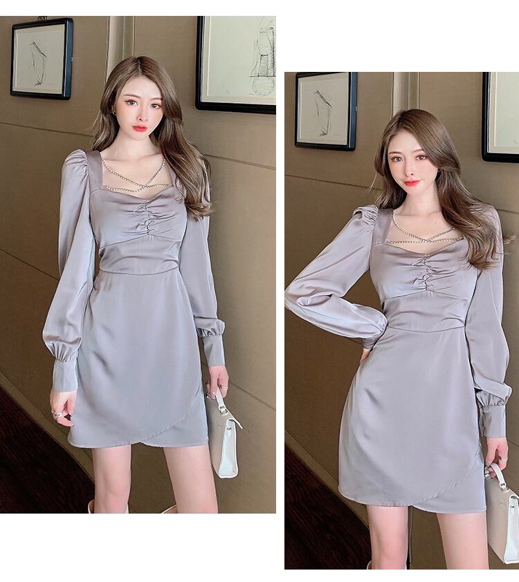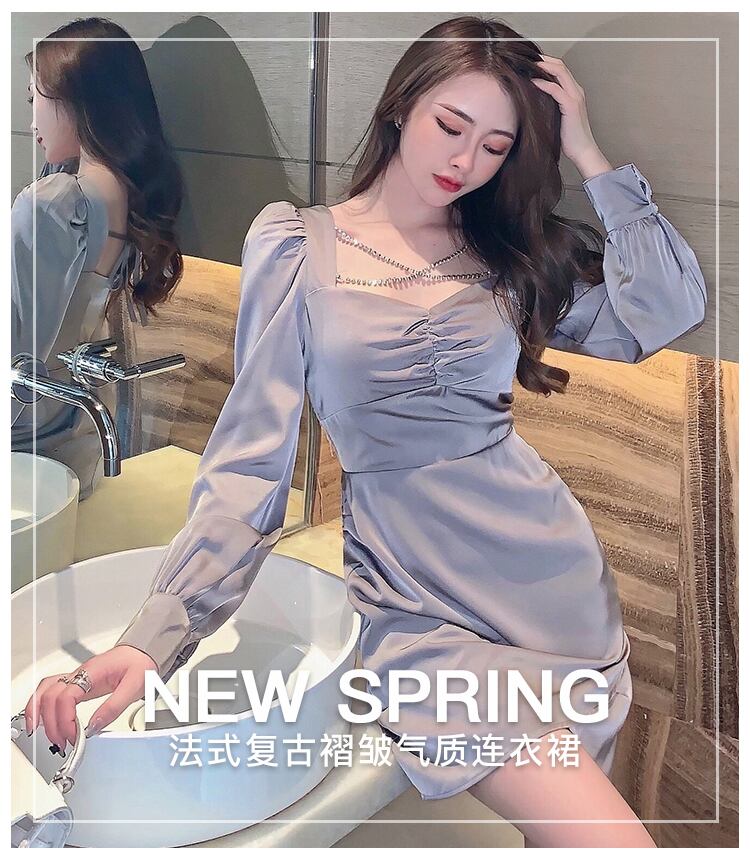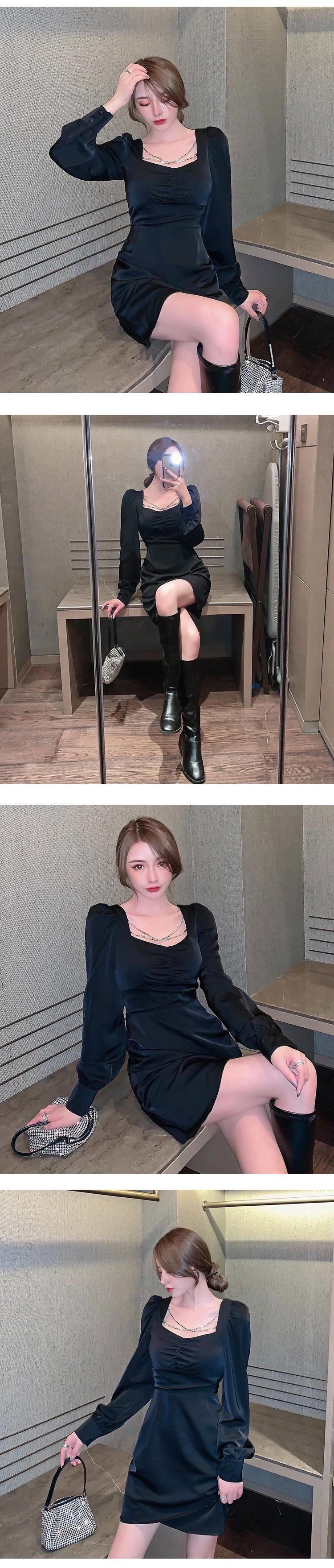 フレンチレトロスクエアネックパフスリーブドレス女性の2021年春新しいライトラグジュアリーレディースセクシーなバックパックヒップスカートを明らかに スプリング 春物 リュック スクウェア yingd41863683772