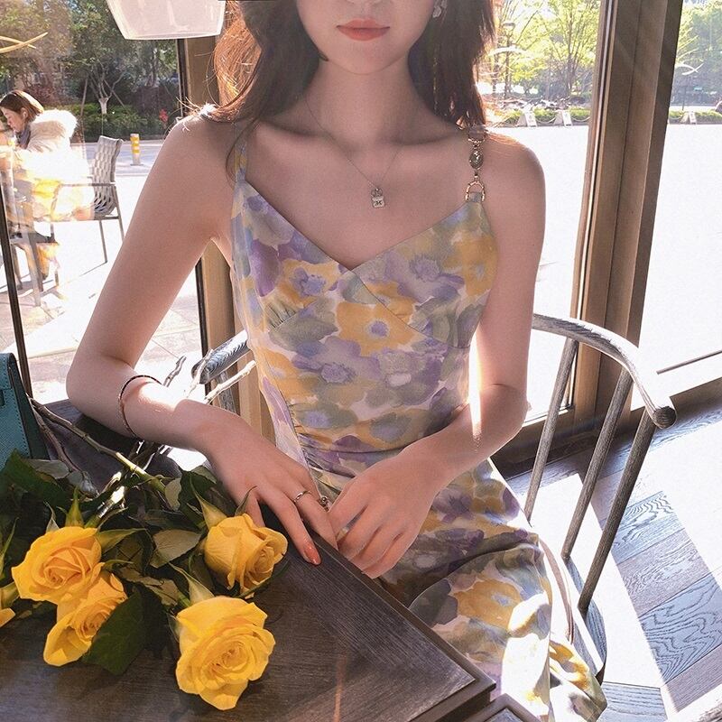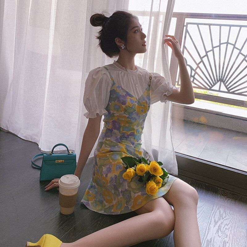小さなデイジーサスペンダードレス女性2020年夏新しいフランスのレトロなスーパーフェアリー甘い花柄スカートツーピースタイド 大人ガーリー スウィート キュート カジュアル サマー 夏物 yingd94181630193