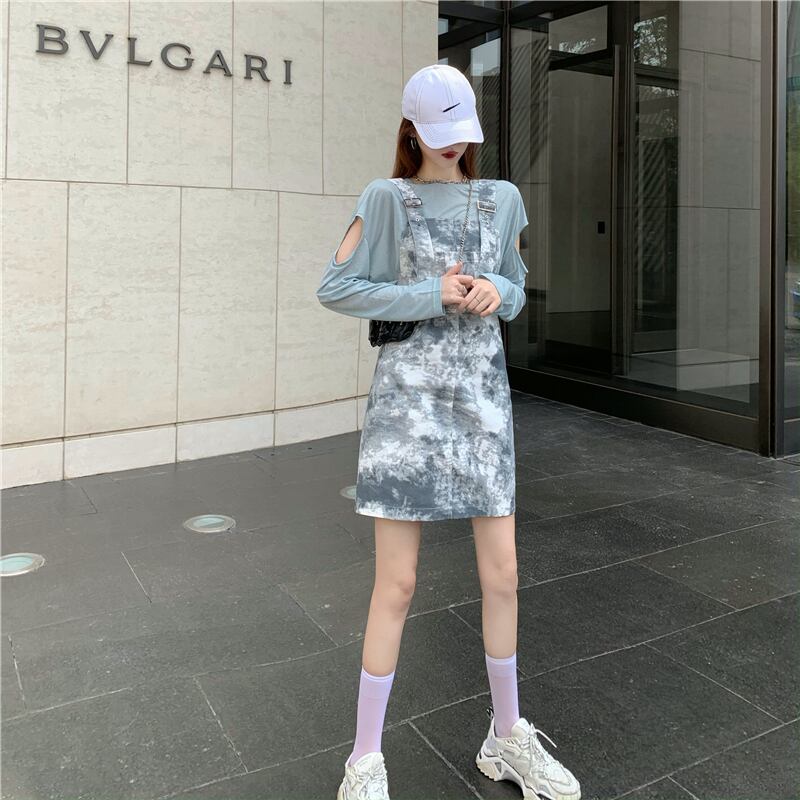 洋風の年齢を減らすサスペンダースカートスーツ女性の2020年夏の新しいカジュアルファッション日焼け止め長袖Tシャツツーピースタイド ロング サマー 夏物 yingd14149967397