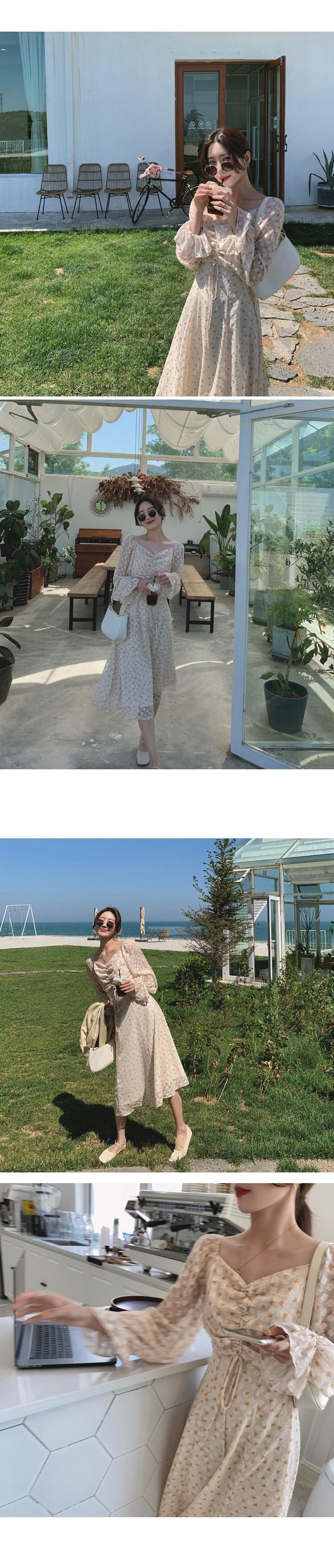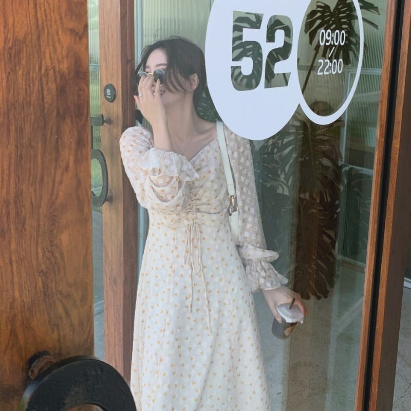 2020年秋新作レディースフレンチレトロウエストウエスト薄手の気質やさしい風長袖フローラルシフォンワンピース ロング オータム 秋物 花柄 yingd88828208981