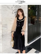 2020年秋新しい女性のフランスのレトロなヘップバーンスタイルのリトルブラックドレスのウエストと薄い気質のスクエアカラーのドレスの女性 オータム 秋物 スクウェア yingd67998488112