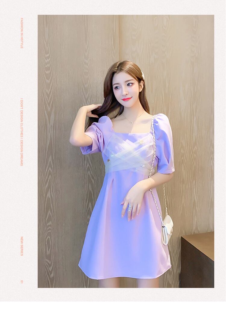 スカートの女性の2020年夏の新しいフレンチレトロスクエアネックパフスリーブパープルドレスフェミニンな気質ウエストと薄い サマー 夏物 スクウェア yingd68188828875