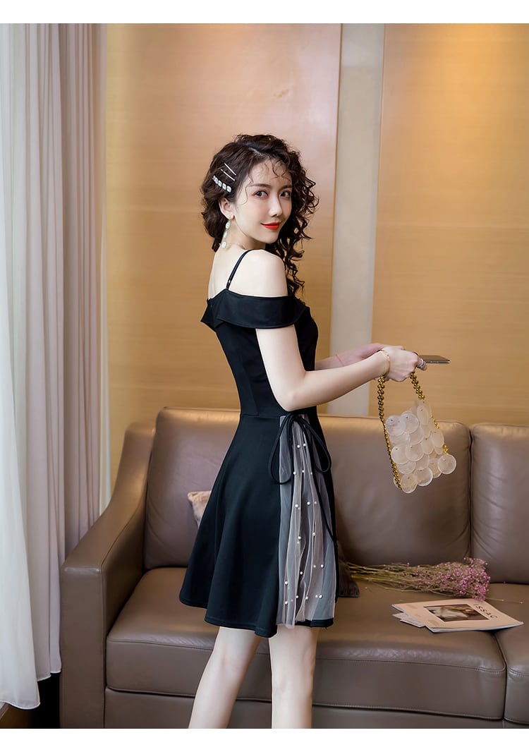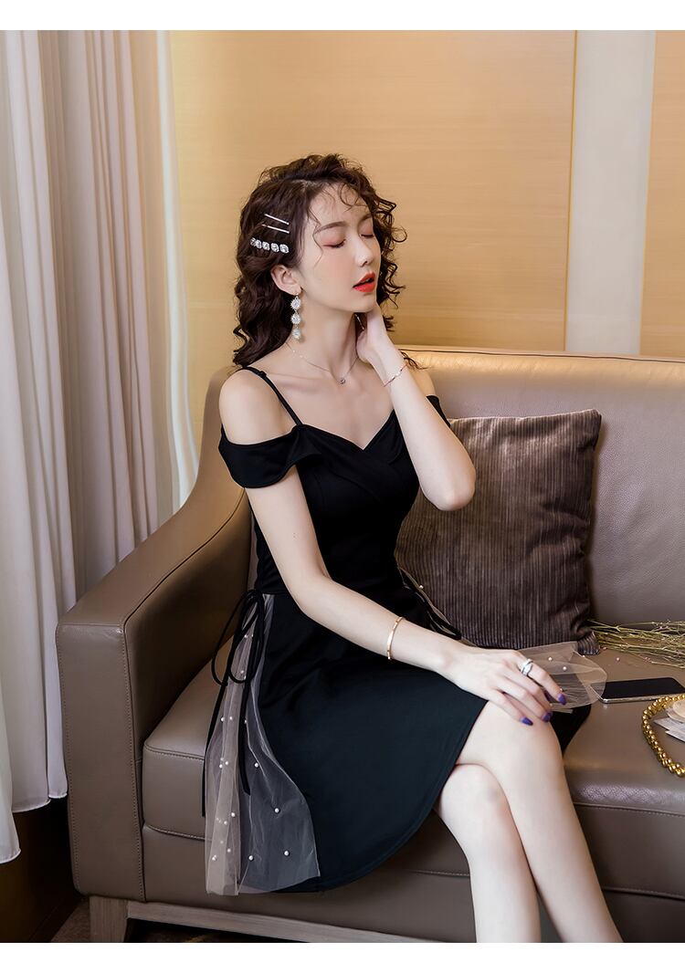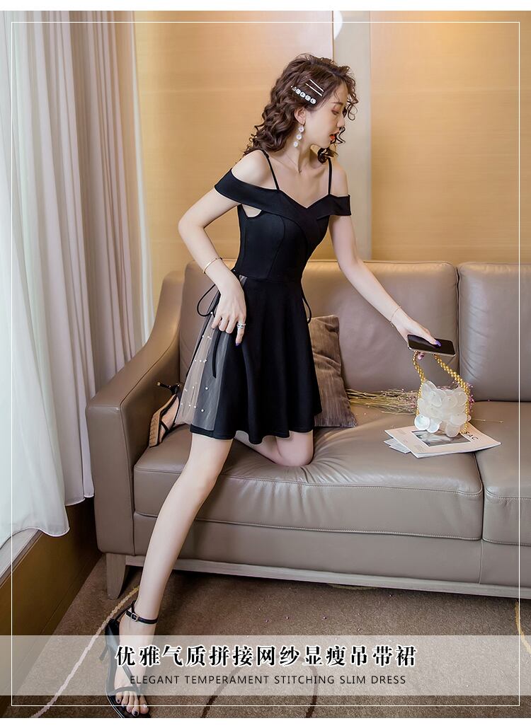 ワンショルダードレス2020新しいサマードレスフランスのレトロな気質の女神ファン人気のヘップバーンスタイルの小さな黒いスカート ブラック 夏物 yingd16258529325