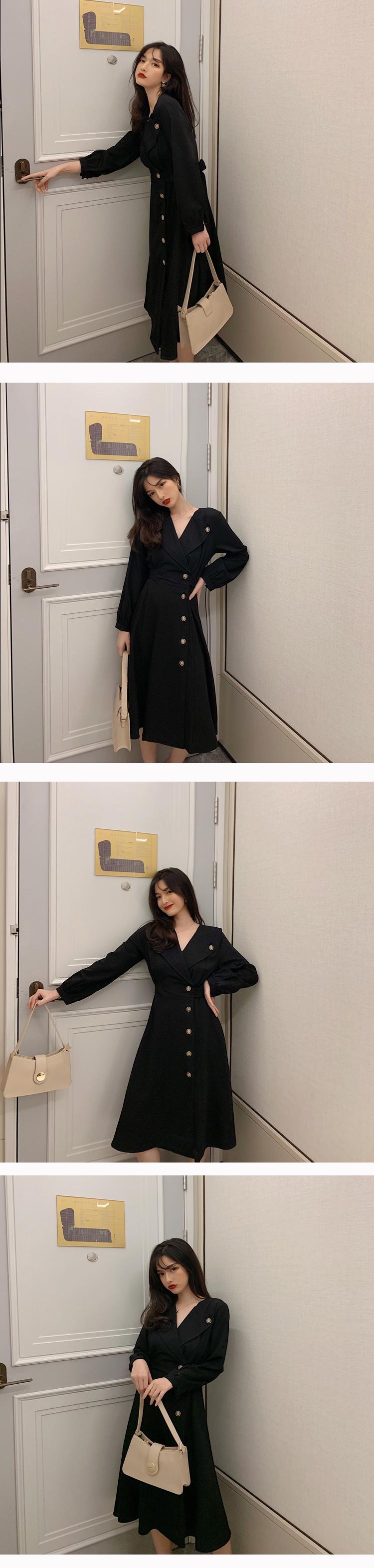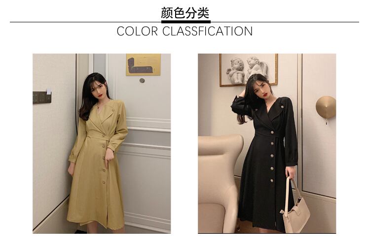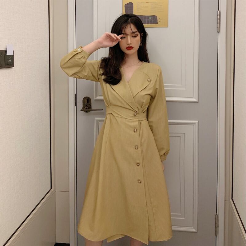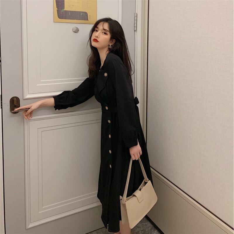ウインドブレーカー2020新しいミドル丈気質シングルブレストウエストとスリムなフレンチレトロデザインの長袖ドレス ロング yingd61594557632