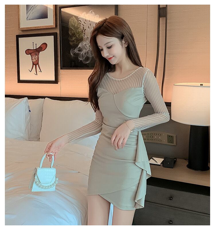 フランスのレトロなニッチなウエストと薄い気質の女神ファン青州スタイルのセクシーなバッグヒップ長袖ドレス女性の秋 ロング オータム 秋物 yingd63316563412