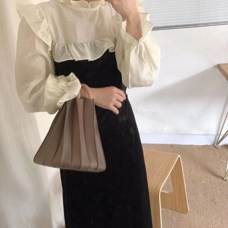春服2021新しいフランスのレトロなウエストウエスト細い気質の女神ファンシフォンステッチベルベットドレス女性 スプリング 春物 yingd7363778810