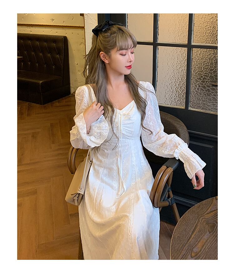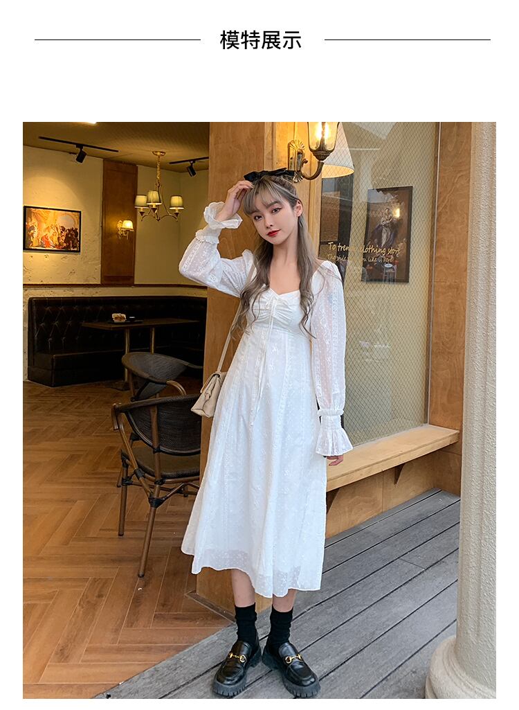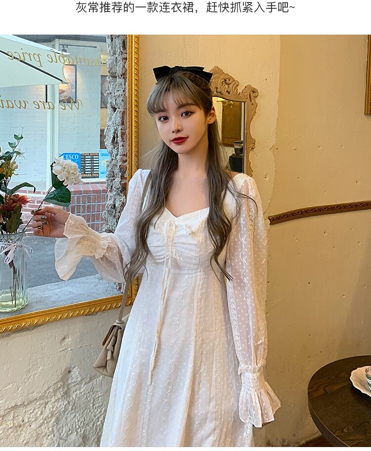 2021年春の新しい女性の優しいスタイルのロングスカートは薄くて気質の高いセクシーなスクエアネックシフォンホワイトドレスです スプリング 春物 スクウェア yingd21698603476
