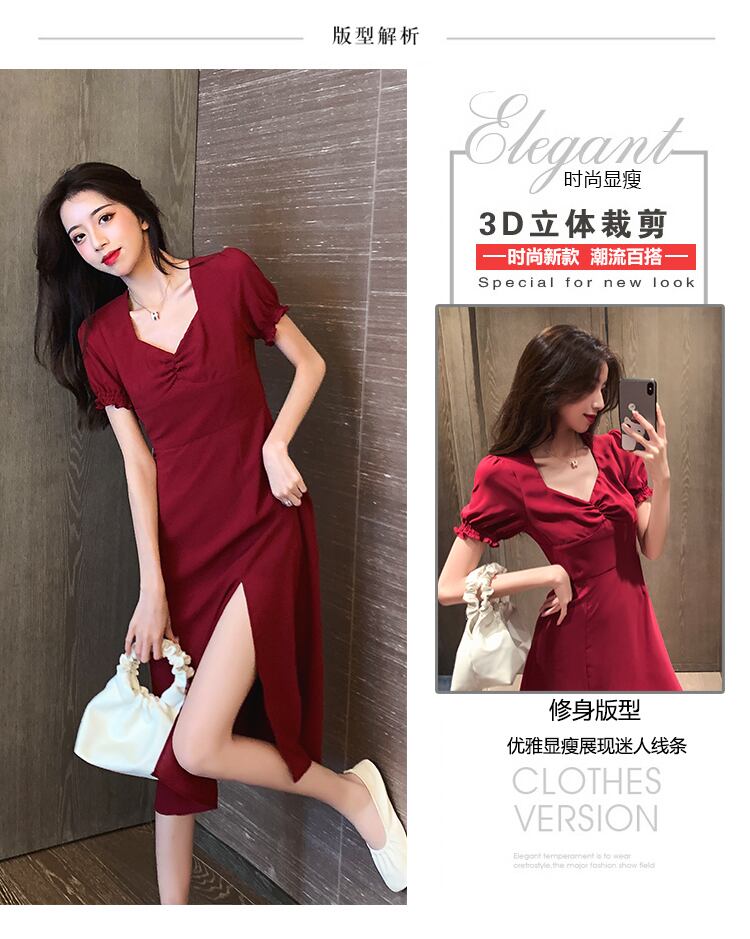 フランスのニッチなパフスリーブ気質女性らしさセクシーなスプリットドレス女性のウエストは細いヘップバーンスタイルのリトルブラックドレスでした yingd89738501085