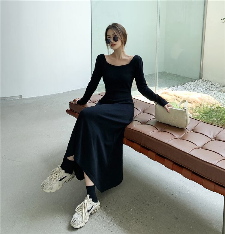 膝上ウエストウエストにコートロングセータースカートを合わせたスカート冬は薄手の気質ボトミングニットドレス女性秋冬 オータム 秋物 ウィンター 冬物 yingd97117590584