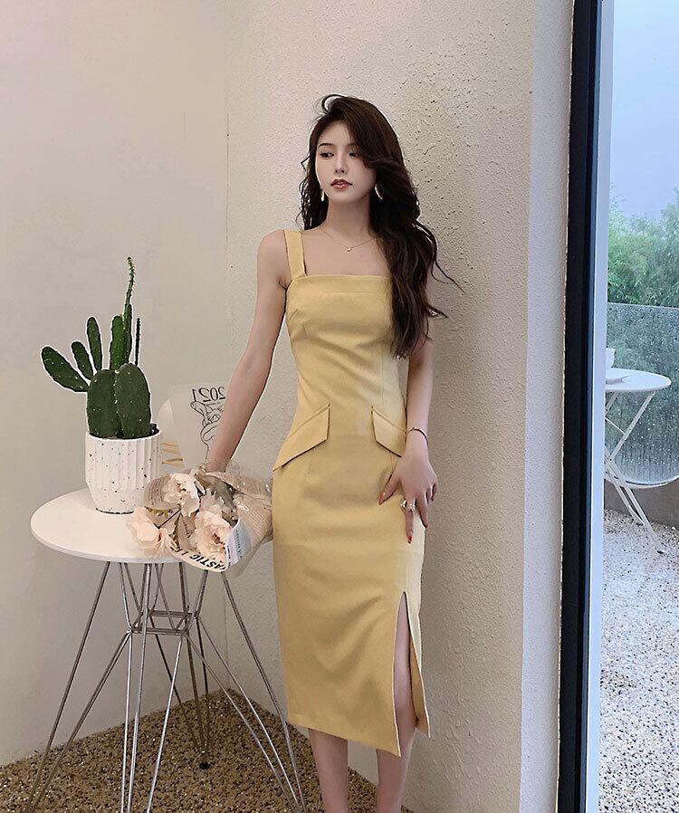 フランスのレトロシックなデザインのサスペンダードレススリムフィットとスリムな気質ロイヤルシスターライトおなじみのスタイルのストラップドレス夏 サマー 夏物 yingd39950063165