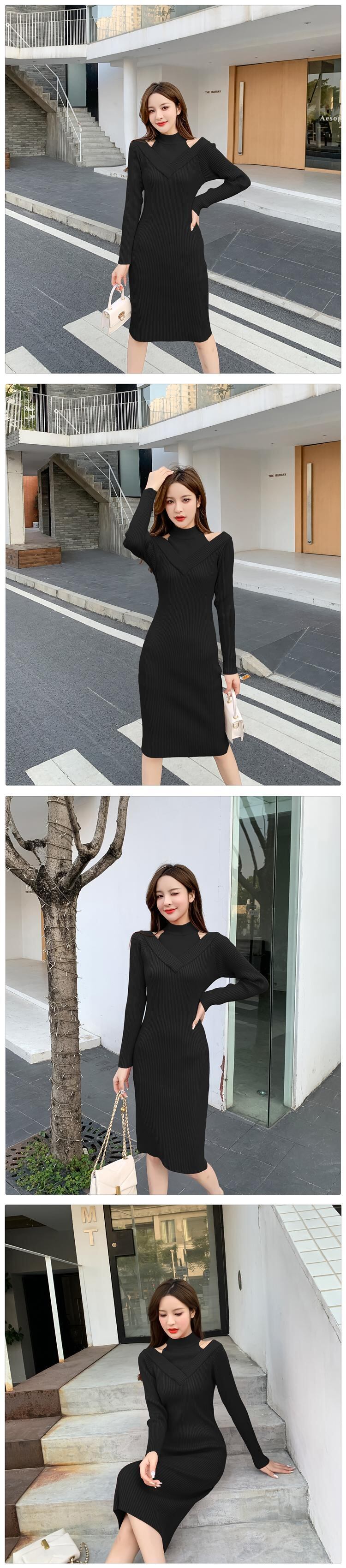 フランスのレトロなロングセータースカート膝上小さなセクシーなオフショルダーニットドレス女性の秋と冬 オータム 秋物 ウィンター 冬物 yingd25677929888
