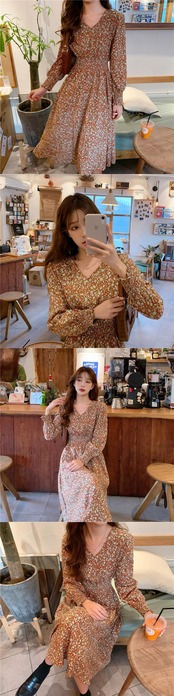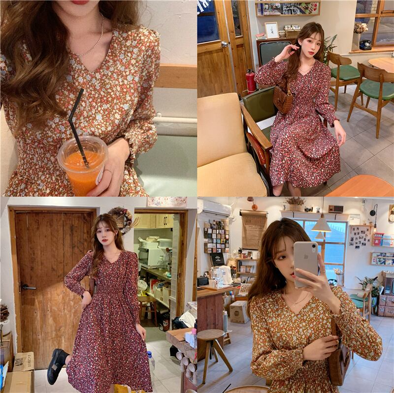 春物2021年新作フレンチレトロハイエンドセンスウエストウエスト薄気質優しい風Vネックフローラルドレス スプリング 花柄 yingd1765168537