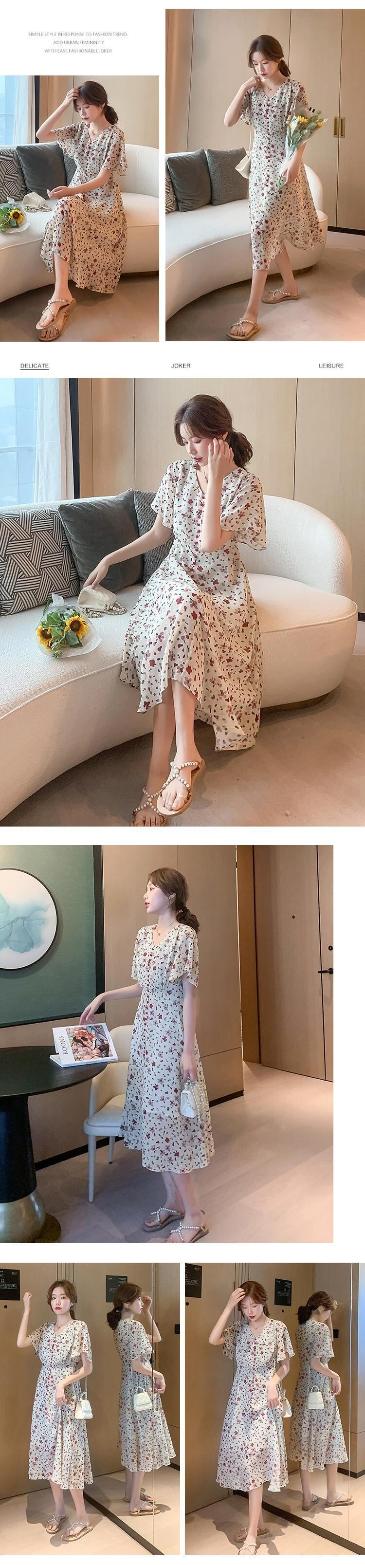 2020年夏新気質Vネックシフォンフローラルドレス女性スリムフレンチ初恋ベルフラワーフェアリースカート サマー 夏物 花柄 フラワーデザイン yingd17746554297