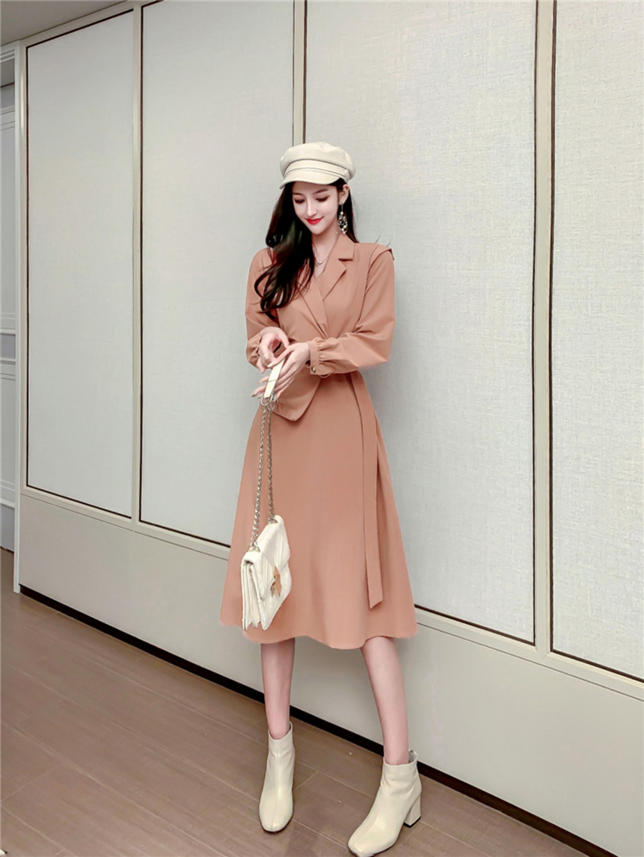 2020年秋新作レディースフレンチレトロニッチデザインスカートライトおなじみスタイルウエスト長袖ワンピースレディース ロング オータム 秋物 yingd53579218636