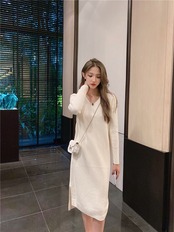 ロングニーセータードレスレディース秋冬アウタールーズレイジースタイル オータム 秋物 ウィンター 冬物 yingd59119594406