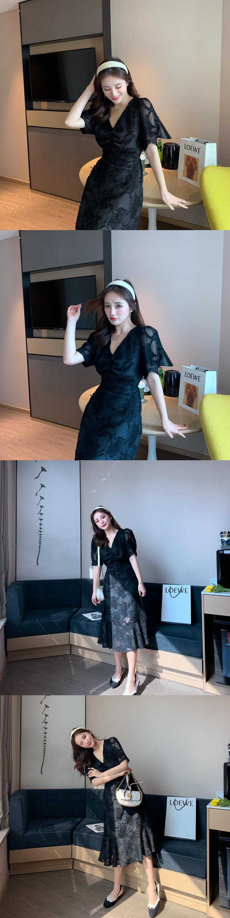 フランスのニッチな妖精のスカートシックな優しい風スーパー妖精のデザインセンスウエストスリム気質フィッシュテールドレス女性の夏 サマー 夏物 yingd89724816982