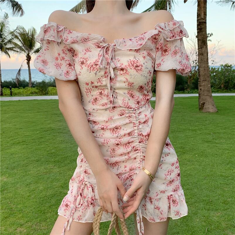 2020年夏の新作フレンチレトロフローラルドレスフェミニンな気質ウエストスリムタイトセクシーパッケージヒップスカート サマー 夏物 花柄 yingd33722967724