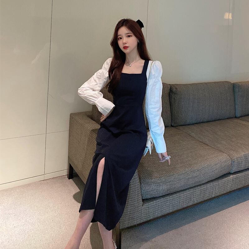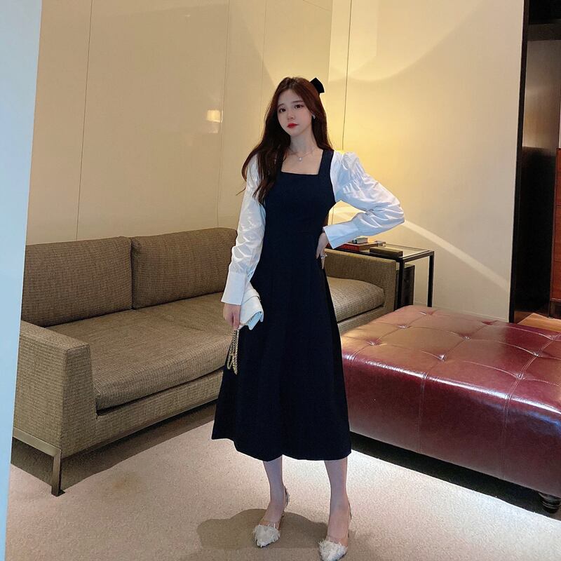 2020年秋新作レディースフレンチレトロスクエアネックパフスリーブデザインスカートライトおなじみスタイル長袖ワンピース ロング オータム 秋物 スクウェア yingd18872077124