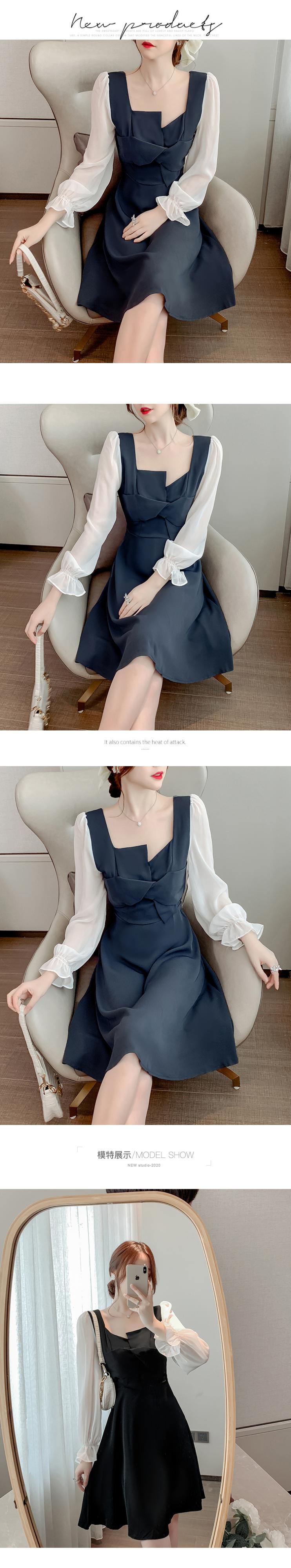2020年秋新作レディースウエストと薄手の気質デザインスカートライトおなじみスタイル丁寧なマシン長袖ワンピース ロング オータム 秋物 yingd11372318422