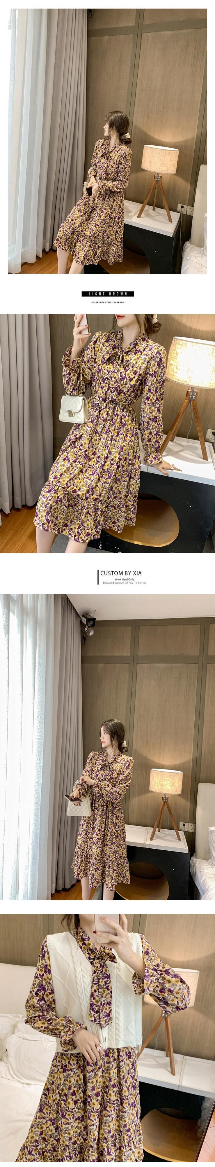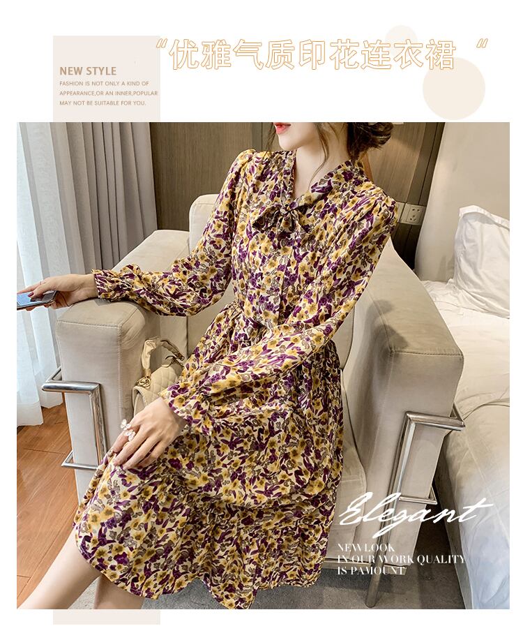 2021年春の新しい女性のフランスのレトロな冷風の女性のハイエンドの長袖シフォン花柄のドレスの女性 ロング スプリング 春物 yingd24274508556