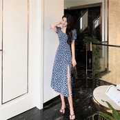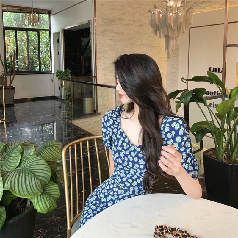 ヘップバーンスタイルフローラルドレス夏フレンチレトロドレス気質女神ファン小さなデイジーパフスリーブフローラルドレス女性 サマー 夏物 花柄 yingd51035107985