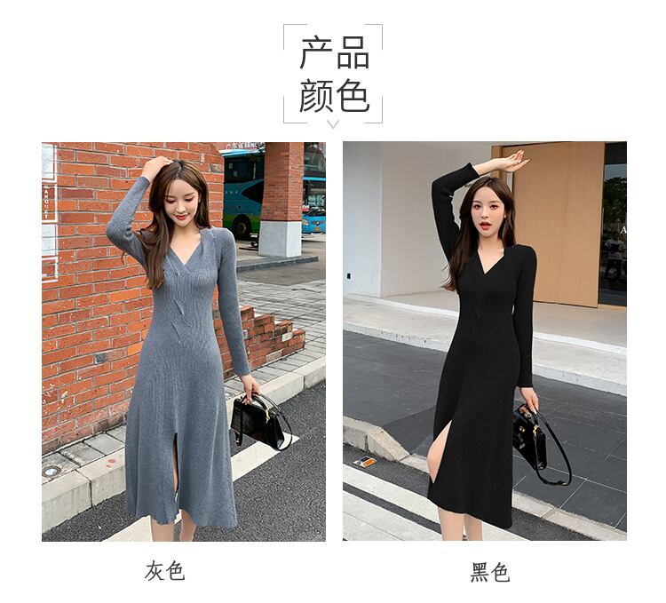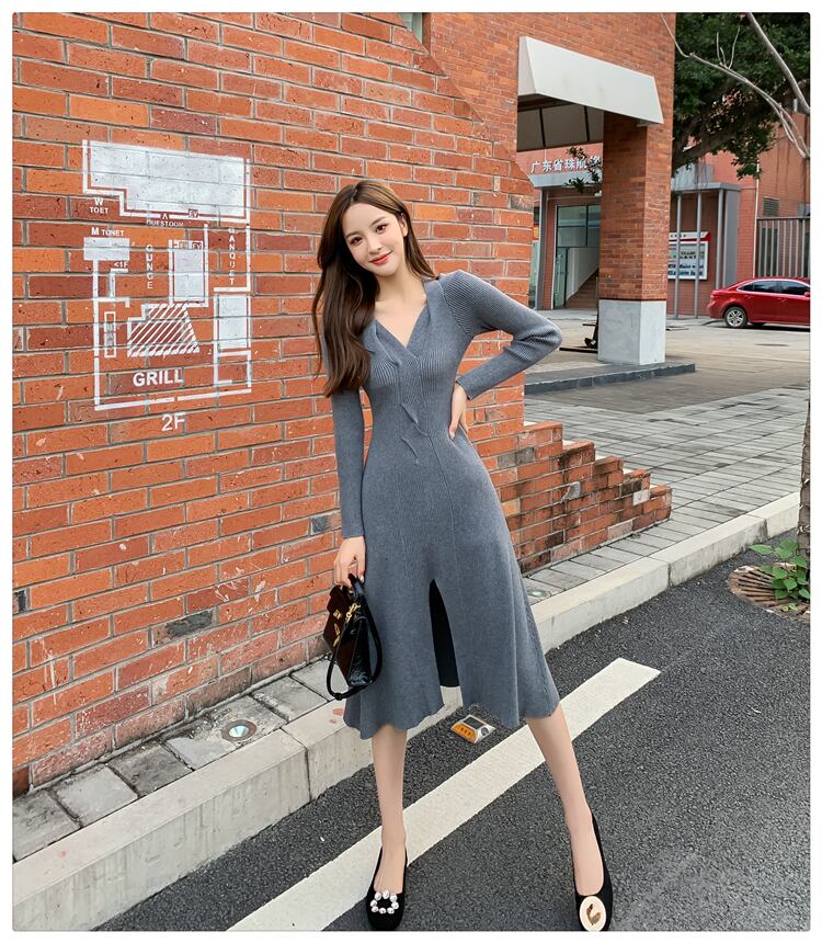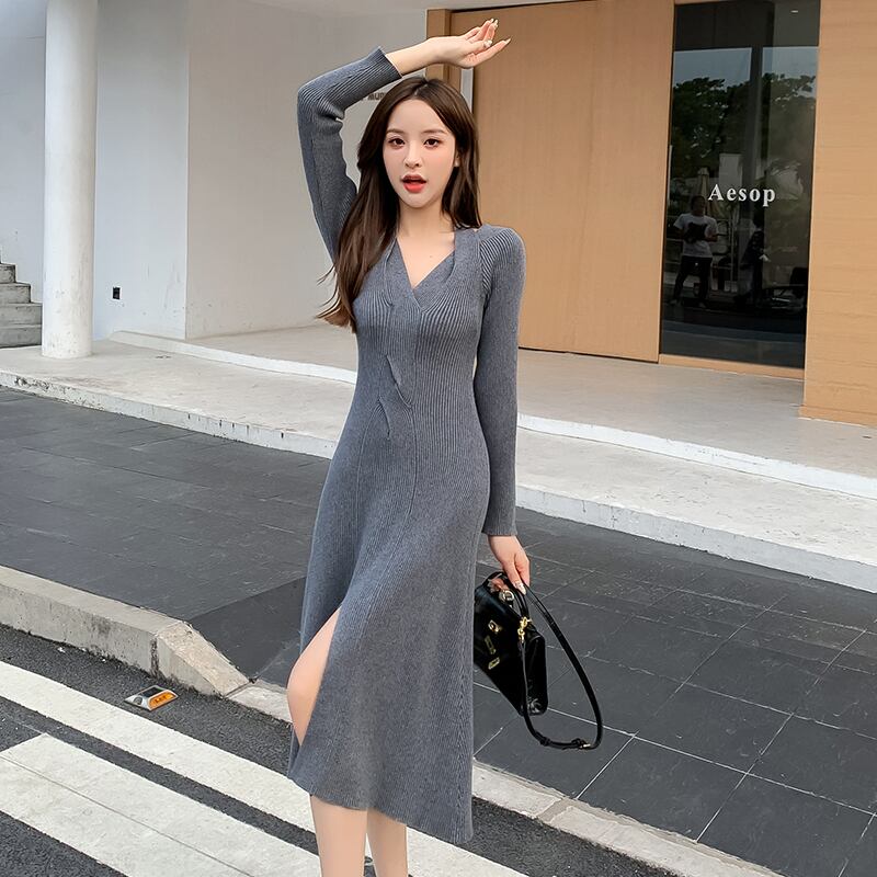 コートとロングスカートで、薄くて上質なセクシーなVネック丁寧なマシンフレンチウエストニットワンピースレディース秋冬 オータム 秋物 ウィンター 冬物 yingd17971707492