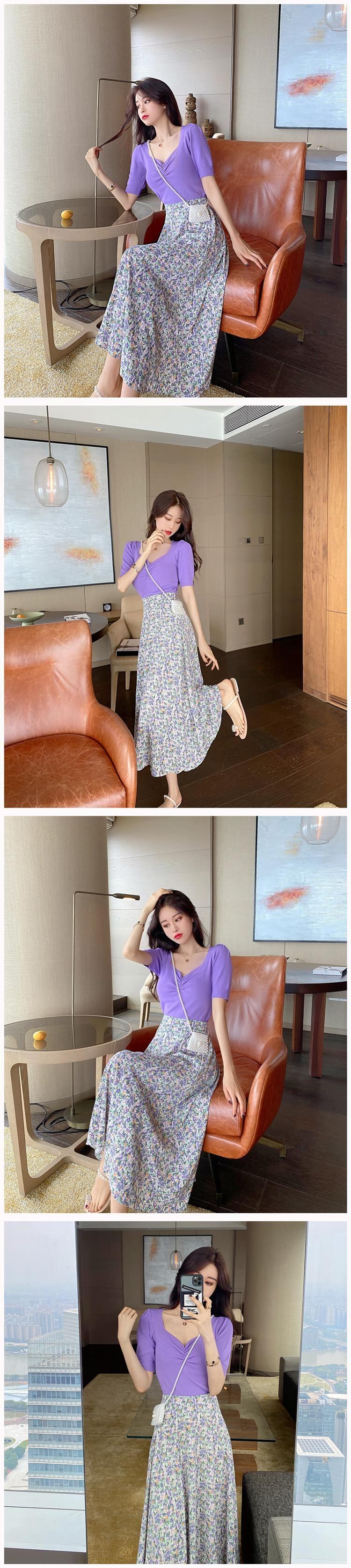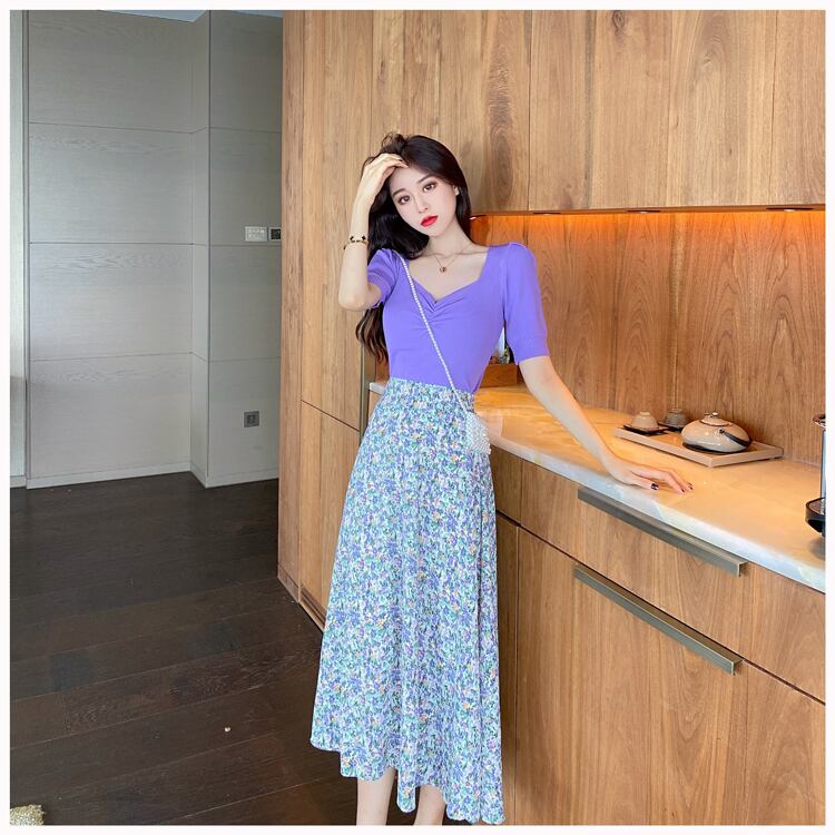 塩辛くて甘いスーツスカート女性の2021年夏新しいフランスのレトロなスクエアネックセーター花柄スカートツーピースセット 大人ガーリー スウィート キュート カジュアル サマー 夏物 スクウェア yingd79104057494