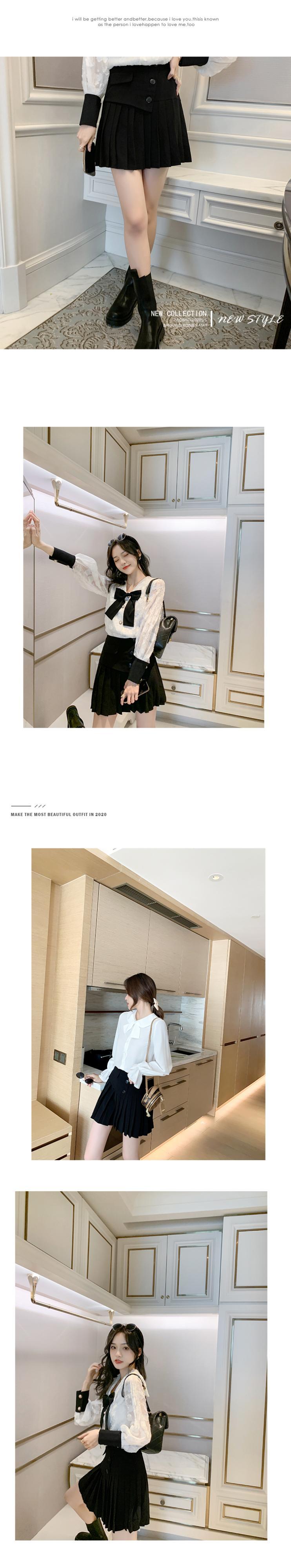 フランスのレトロなハイウエストスリムプリーツショートスカート女性の2021年春の新しいaラインスカート黒のスカートの女性 ハイウェスト ブラック スプリング 春物 yingd82378769029