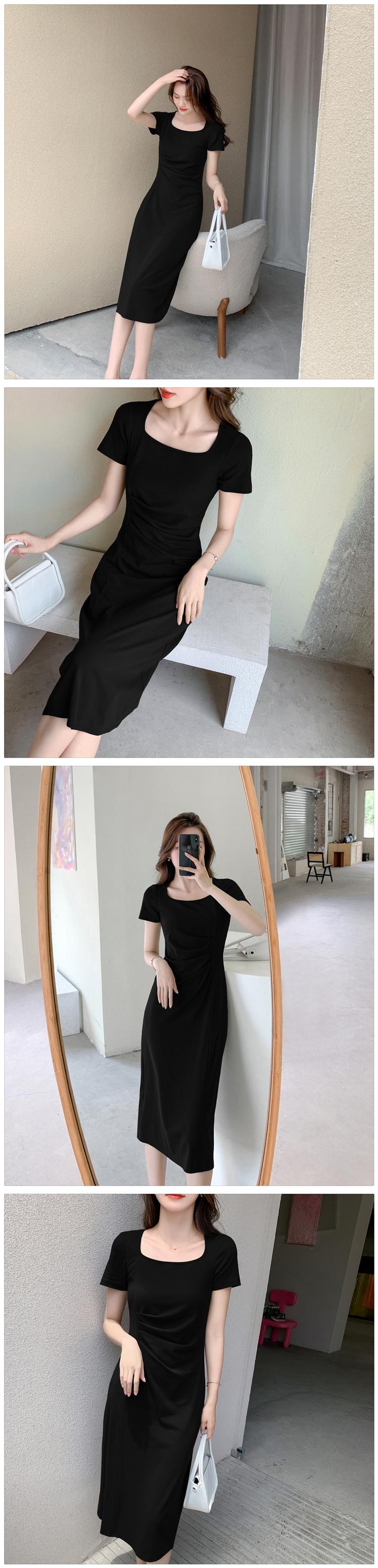 フランスのレトロシックなデザインのスカートスリムフィットと薄い気質の女神ファンウエストプリーツドレス女性の夏 サマー 夏物 yingd82448061265