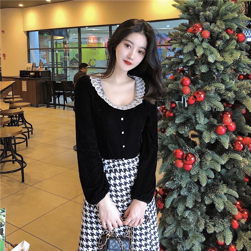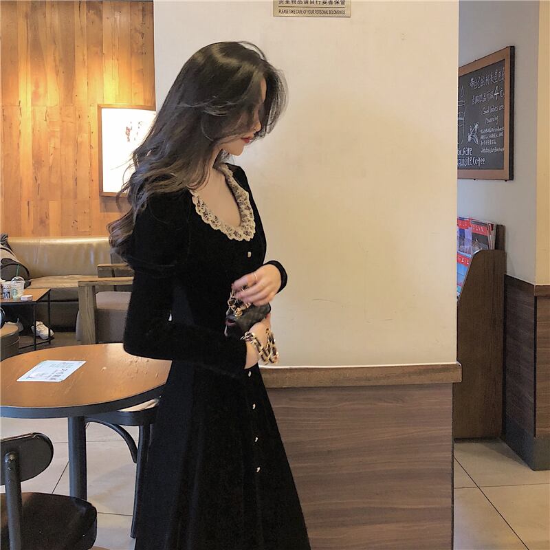 フレンチレトロヘップバーンスタイル気質ハイエンドライトラグジュアリーレディースライトおなじみスタイルセクシーブラックベルベットドレスレディース秋冬 オータム 秋物 ウィンター 冬物 yingd35851833235