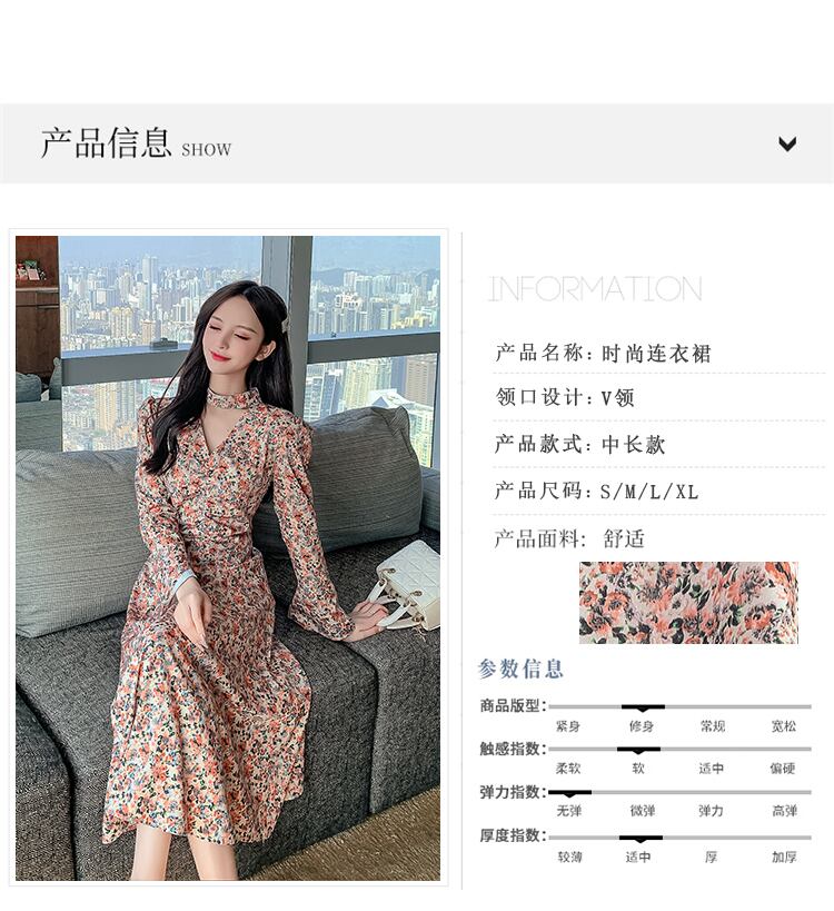 春物2021年新作レディースフレンチレトロウエストウエスト薄手の気質ライトラグジュアリーデザインVネックフローラルドレス スプリング 花柄 yingd80037250206