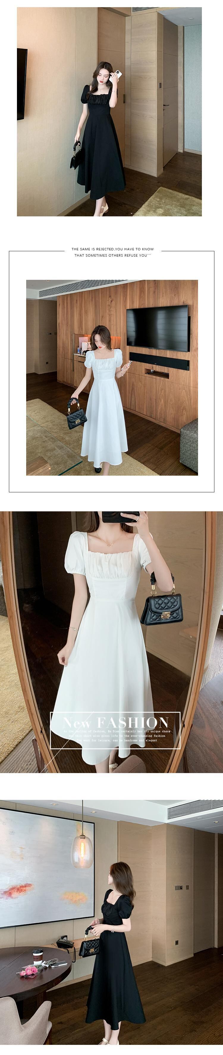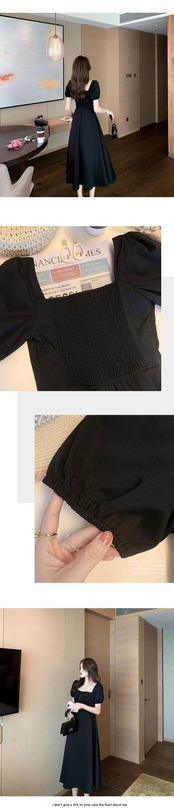 フレンチレトロヘップバーンスタイルロングドレスサマーライトラグジュアリーレディースフライドストリートロイヤルシスターライトおなじみスタイルウエストスクエアカラードレス女性夏 夏物 スクウェア yingd28020035602