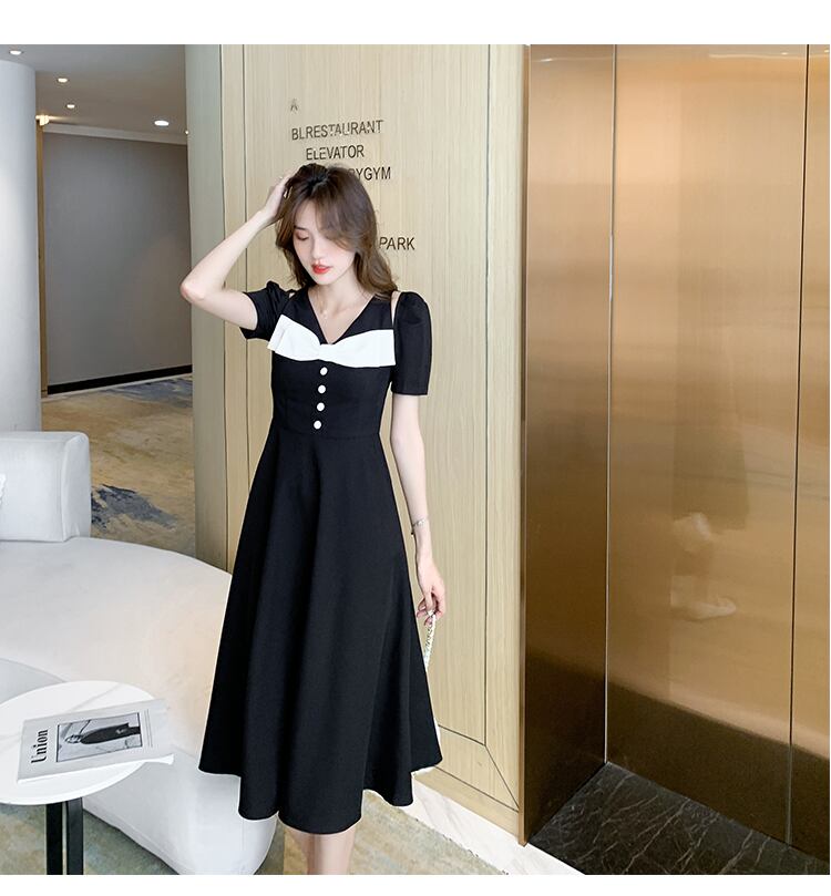 フランスのレトロなヘップバーンスタイルのリトルブラックドレスシックなデザインの弓ロイヤルシスターライトおなじみのスタイルスリムドレス女性の夏 リボン サマー 夏物 yingd63764896781