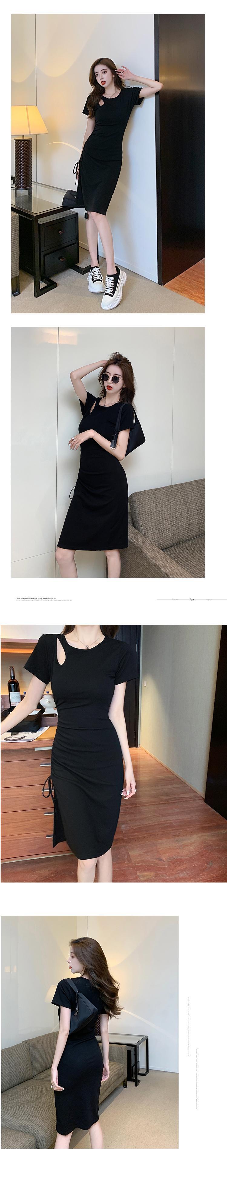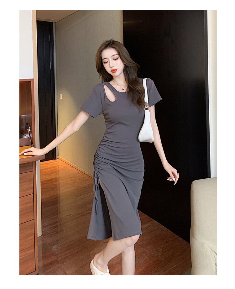 フランスのレトロなセクシーなスプリットロングスカートYujie軽いおなじみのスタイルスリムフィットと薄い慎重なマシン中空巾着ドレス夏 サマー 夏物 yingd85419546601