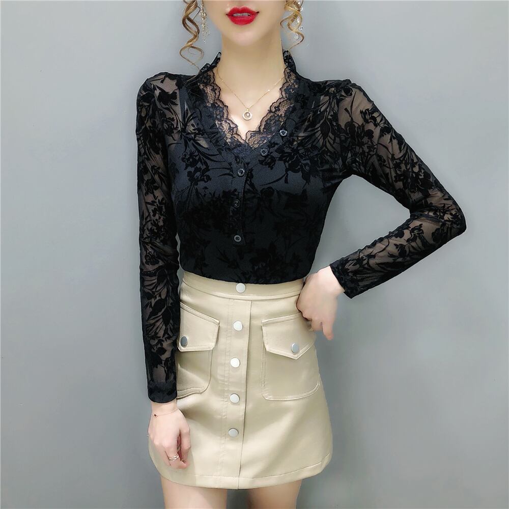 プラスベルベットレースボトミングシャツレディース秋冬セクシーインナーメッシュ長袖ボトミングシャツトップスーパーフェアリーデザイン気質 ロング オータム 秋物 ウィンター 冬物 yingd81167860870
