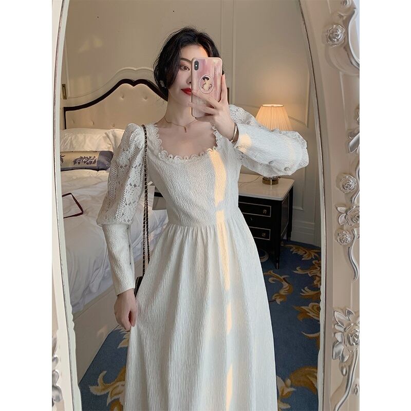 フランスのニッチベルフラワーティーブレイクスカートウエストと薄い気質レトロスクエアネックドレス女性の春2021新しい スプリング 春物 フラワーデザイン スクウェア yingd99637652314