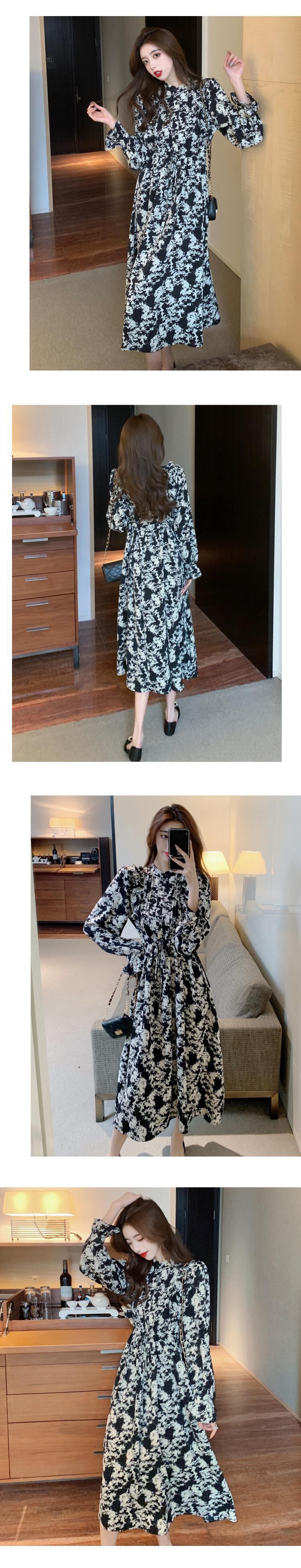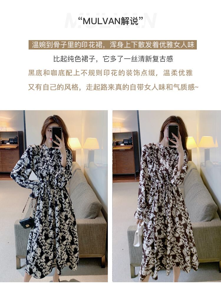 春物2021年新作レディースフレンチレトロコールドウィンドハイエンドライトラグジュアリーレディースシフォンフローラルドレスレディース スプリング 花柄 yingd25619627917