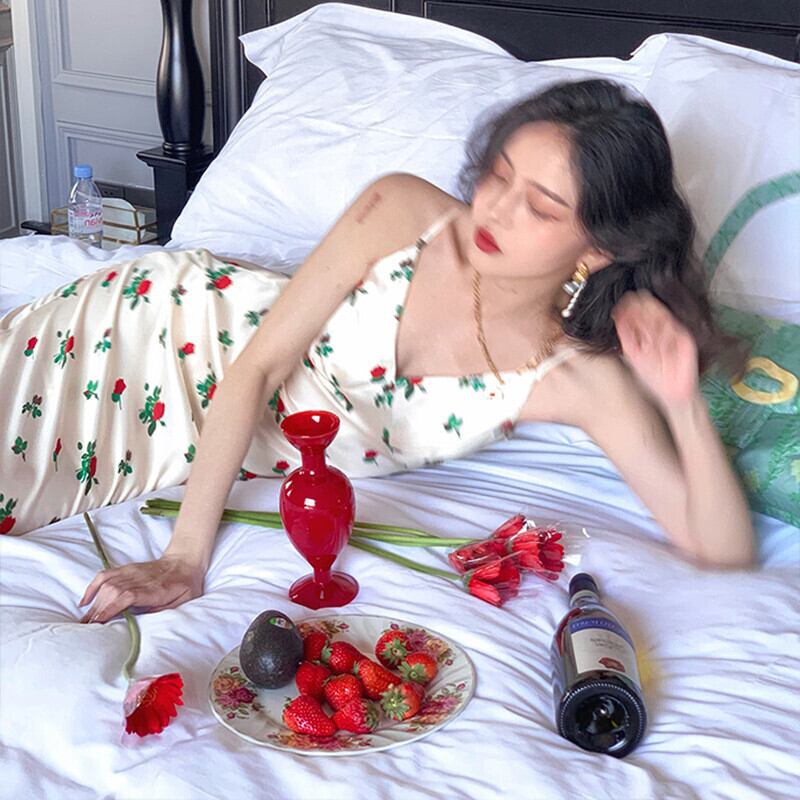フレンチスモールフローラルサスペンダードレスレディースサマードレス2021新しいクールウィンドハイエンドVネックバックレスサスペンダースカート 夏物 花柄 yingd71062458075