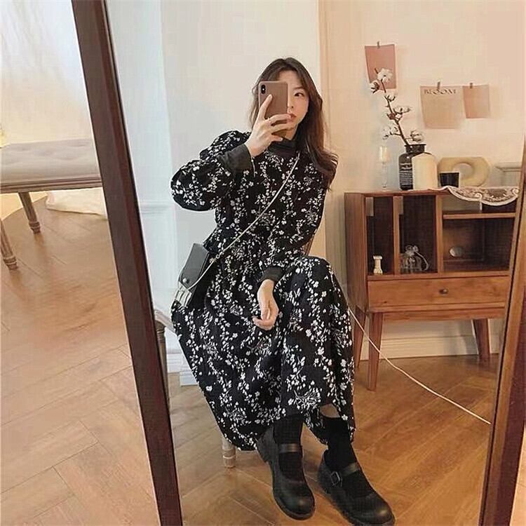 フランスのレトロなヘップバーンスタイルの花柄のドレスは、薄くて気質が高く、穏やかな風、塩、甘い花柄のドレスの女性です 大人ガーリー スウィート キュート カジュアル yingd53527020053
