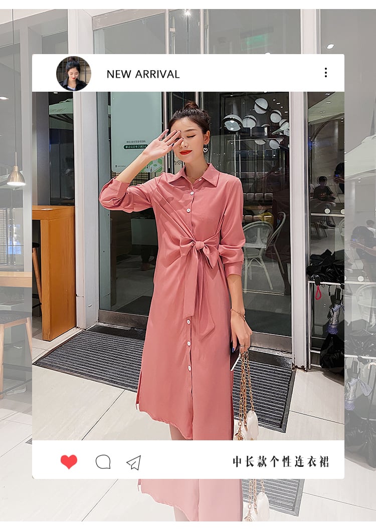 2020年秋の新作レディースフレンチレトロデザインシャツスカートミドル丈ウエストとスリム長袖ワンピース ロング オータム 秋物 yingd22000168847