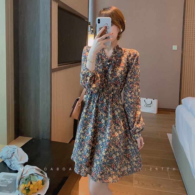 フランスのレトロな優しいスタイルの花柄のドレス女性の2021年春の新しいウエストウエストの薄い気質の花柄のドレス スプリング 春物 yingd56456221779